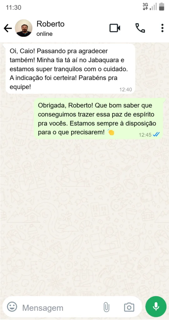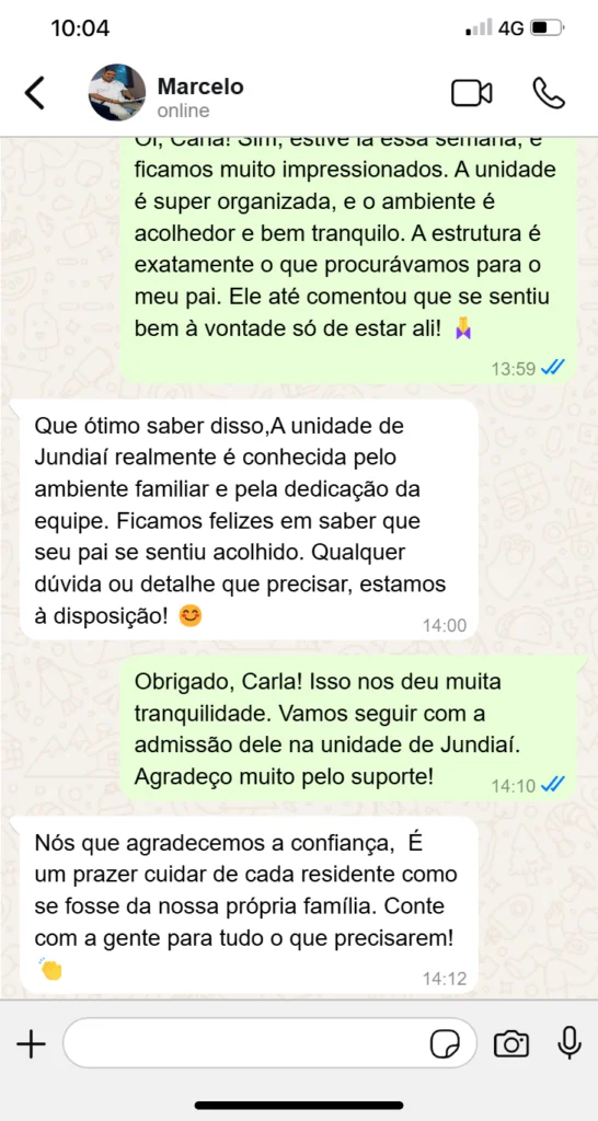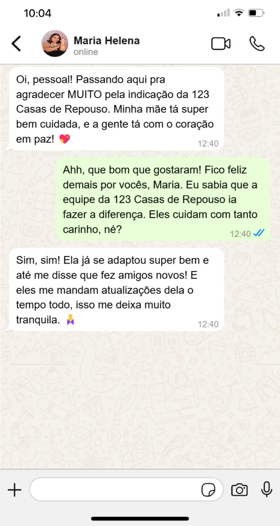 Nada fala mais alto do que a experiência de nossos residentes e suas famílias. Veja os depoimentos de quem já confiou em nosso trabalho e entenda por que somos referência em cuidado e acolhimento para idosos.